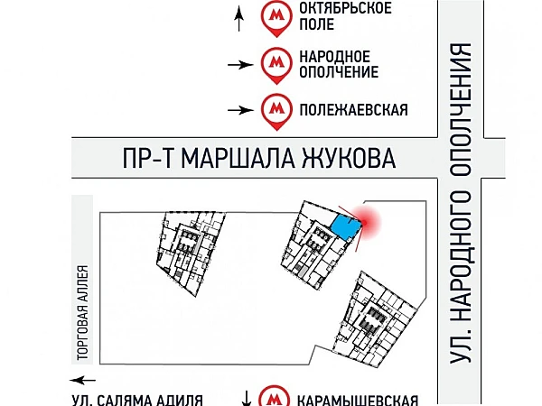 . Локация — динамично развивающийся кластер СЗАО рядом с проспектом Маршала Жукова и новыми станциями метро. Высокий пешеходный и автомобильный трафик, насыщенная жилая застройка и дефицит качественных коммерческих площадей делают это предложение актуальным для ритейла, салонов, студий, общепита, офисов и сервисных форматов.