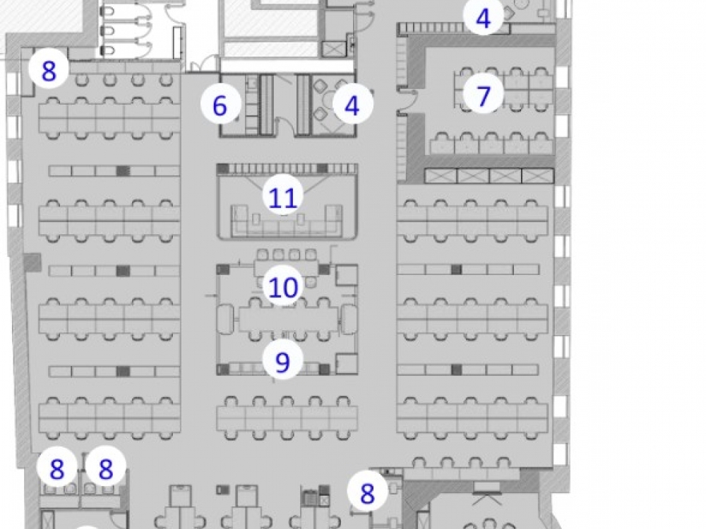 . В офисе представлены рабочие зоны с фиксированными и гибкими местами в формате ореn sрасе, а также отдельные офисы, всего 177 рабочих мест. Для встреч и мероприятий предусмотрены полностью оборудованные переговорные комнаты и конференц-зал. Резиденты офиса могут воспользоваться шумоизолированными пространствами для конфиденциальных звонков, зонами отдыха, а также кухнями, оснащёнными всем необходимым.