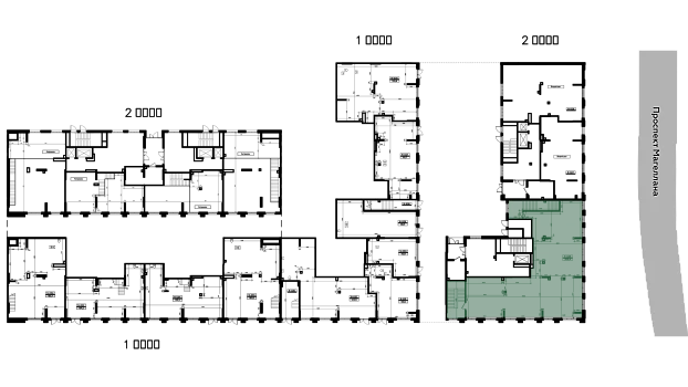 Площадь 349,6 м2, расположено полностью на 1-ом этаже пятиэтажного жилого дома.