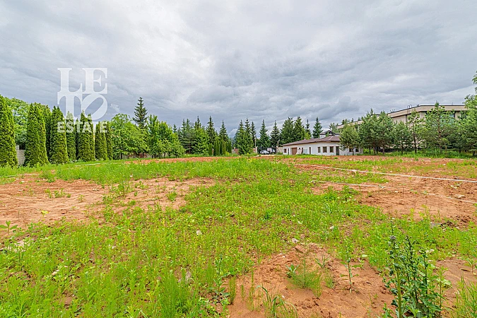Участок правильной формы, ровный и сухой находится в середине поселка на тихой улице, огорожен качественным забором, есть въездные кованые ворота. На участке построено здание хозяйственного назначения: гараж на два автомобиля, котельная, помещение охраны и комната отдыха для водителя, три спальни для персонала (можно использовать как гостевые), кухня, прачечная, гардеробная, несколько санузлов.