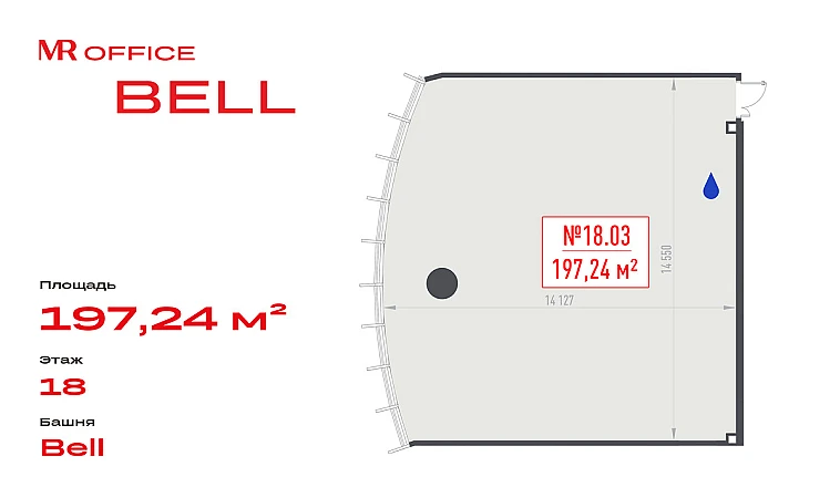 Продается офисное помещение 197.24 кв.м на 18 этаже в новом небоскребе класса Prime — БЦ BELL на Белорусской от бренда MR Office.