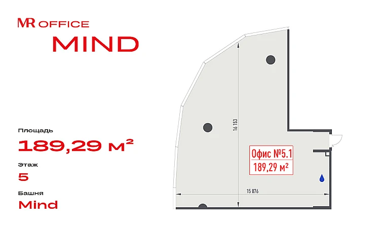 MIND — это 17-этажная офисное здание с современной архитектурой, панорамным остеклением и технологичной инженерией. Помещения предполагают возможность индивидуального зонирования пространства под задачи вашей команды.