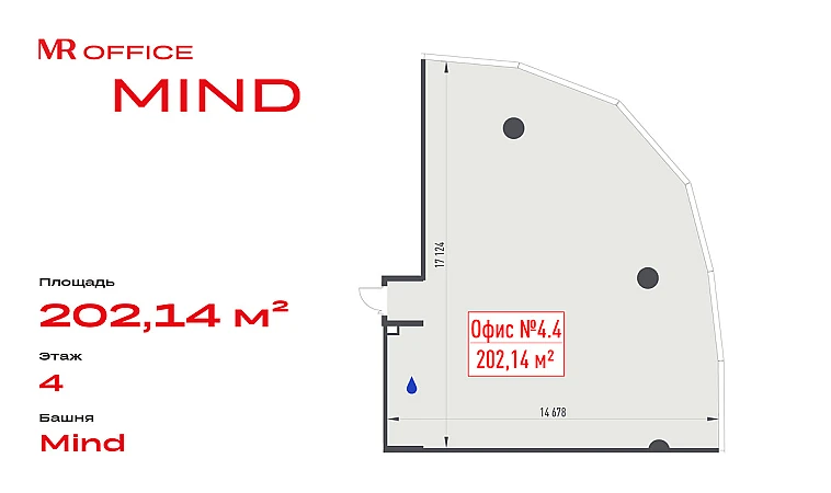 MIND — это 17-этажная офисное здание с современной архитектурой, панорамным остеклением и технологичной инженерией. Помещения предполагают возможность индивидуального зонирования пространства под задачи вашей команды.
