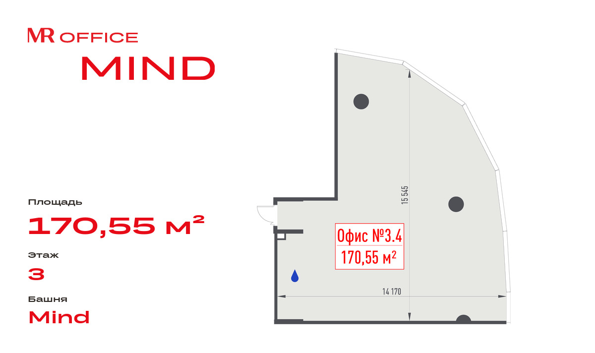 MIND — это 17-этажная офисное здание с современной архитектурой, панорамным остеклением и технологичной инженерией. Помещения предполагают возможность индивидуального зонирования пространства под задачи вашей команды.
