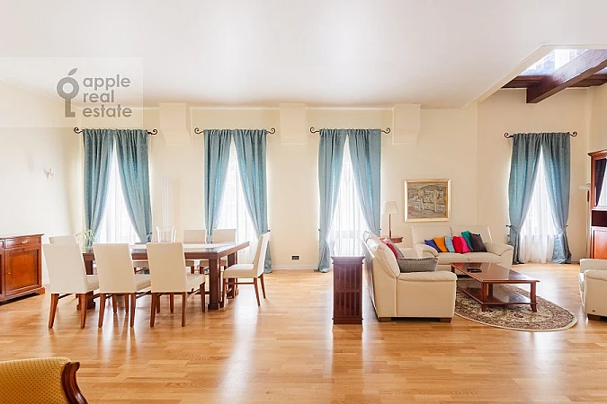 Прекрасная 4-комнатная квартира в отреставрированном дореволюционном особняке (памятник архитектуры), 4 этаж 4 этажного здания. Спален по планировке: 3, санузлов: 2. Общая площадь: 185 кв.м. Площади комнат: 90-18-16-18 кв.м. Площадь кухни 18 кв.м. Ремонт в современном европейском стиле. Квартира предлагается полностью с мебелью, вывоз обсуждается. Домофон, видеонаблюдение, презентабельная входная группа, презентабельный подъезд с оранжереей. Охраняемый паркинг во дворе со шлагбаумом. Окна выходят в тихий двор, дом на 2-й линии Тверской, в квартире тихо. Стиральная машина, посудомоечная машина, кондиционеры, бойлер, душевая кабина, подогрев полов, кабельное тв, высокоскоростной интернет, можно с детьми, можно с маленькими животными, возможна оплата по безналу.