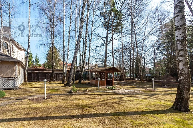 Красивый лесной участок 20 соток, на котором находится крыта летняя веранда с гидромассажной ванной и зоной барбекю.