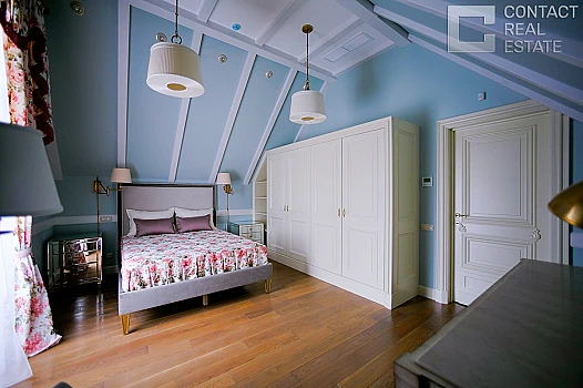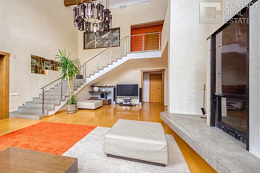 2-й этаж: кабинет, мастер-спальня с камином, балконом и с/у, гардеробная, гостевая спальня.