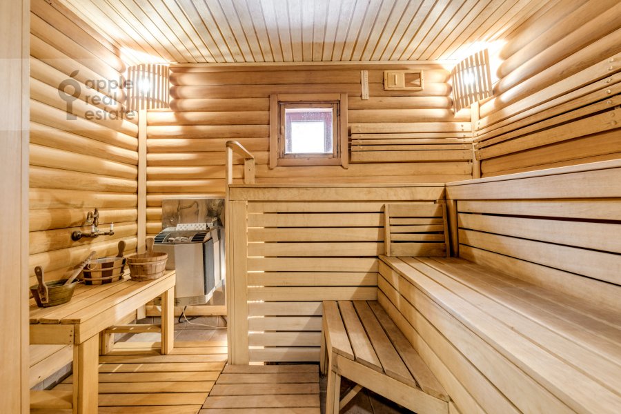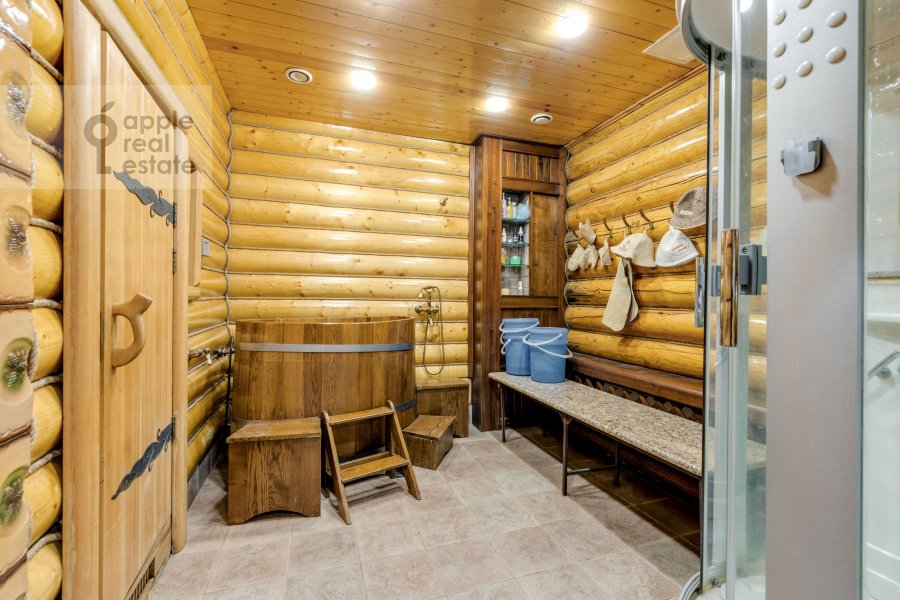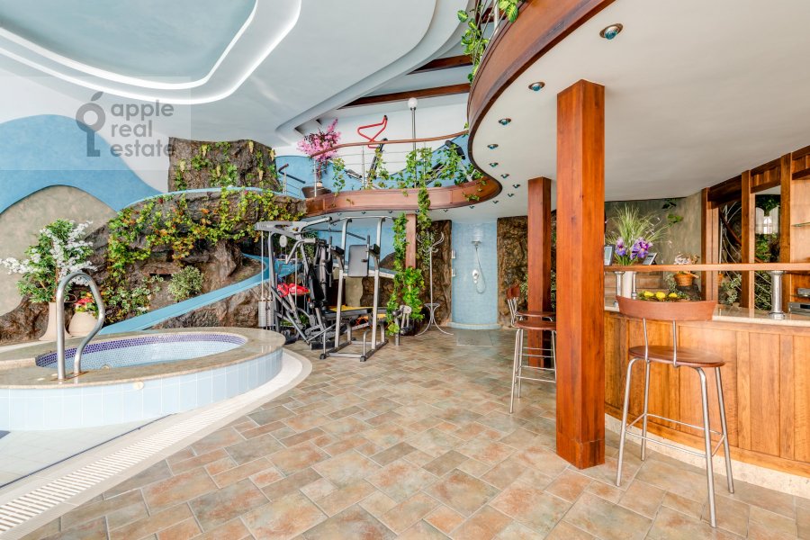 В доме отличная СПА-зона с большим бассейном, джакузи и водной горкой, а также спортзал, сауна с купелью и баром. Гостиная-столовая с большим бильярдным столом.