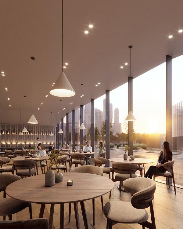 Помещение сдано в состоянии «Shell core» и оснащено большими панорамными окнами. Обеспечены два отдельных входа с улицы. При создании объекта применены уникальные планировочные решения и передовые технологии, включая систему вентиляции и охлаждения воздуха. Вход в звание осуществляется по пропускам с использованием телефона или технологии Face ID.