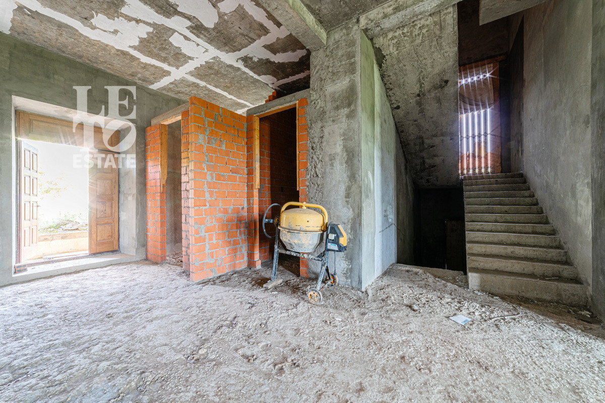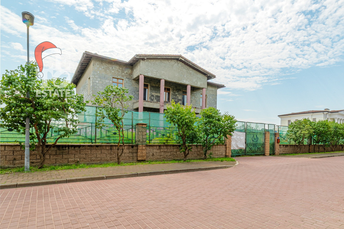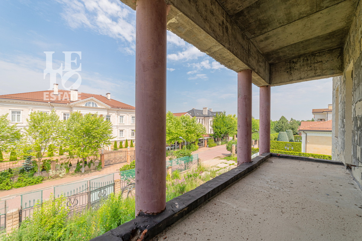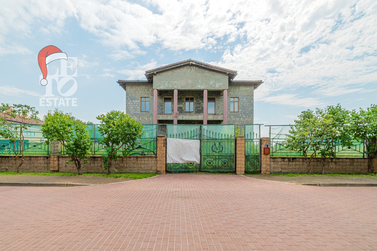 На участке 40 соток расположен дом без отделки 703 кв.м. Есть возможность достроить два дополнительных блока в дому по 500 кв.м. Залит фундамент. В доме разведены центральные коммуникации: отопление газовое ( котёл VIESSMANN 100), канализация, центральное качественное водоснабжение и канализация.