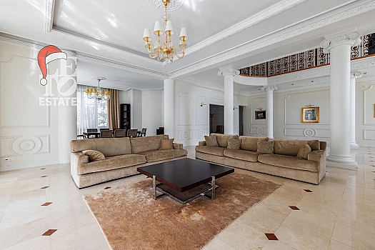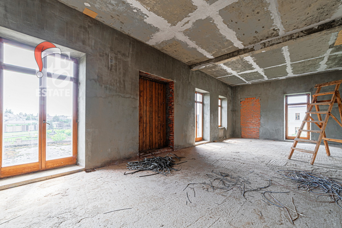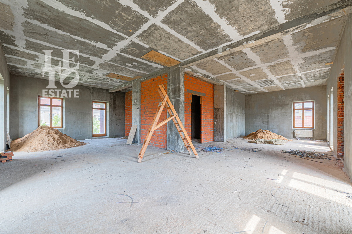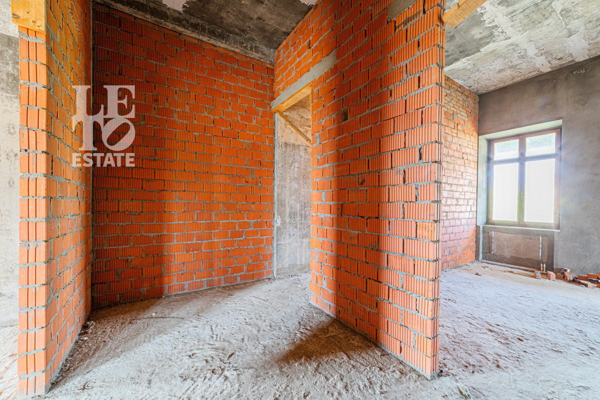На участке 40 соток расположен дом без отделки 703 кв.м. Есть возможность достроить два дополнительных блока в дому по 500 кв.м. Залит фундамент. В доме разведены центральные коммуникации: отопление газовое ( котёл VIESSMANN 100), канализация, центральное качественное водоснабжение и канализация.