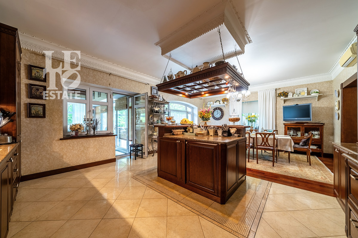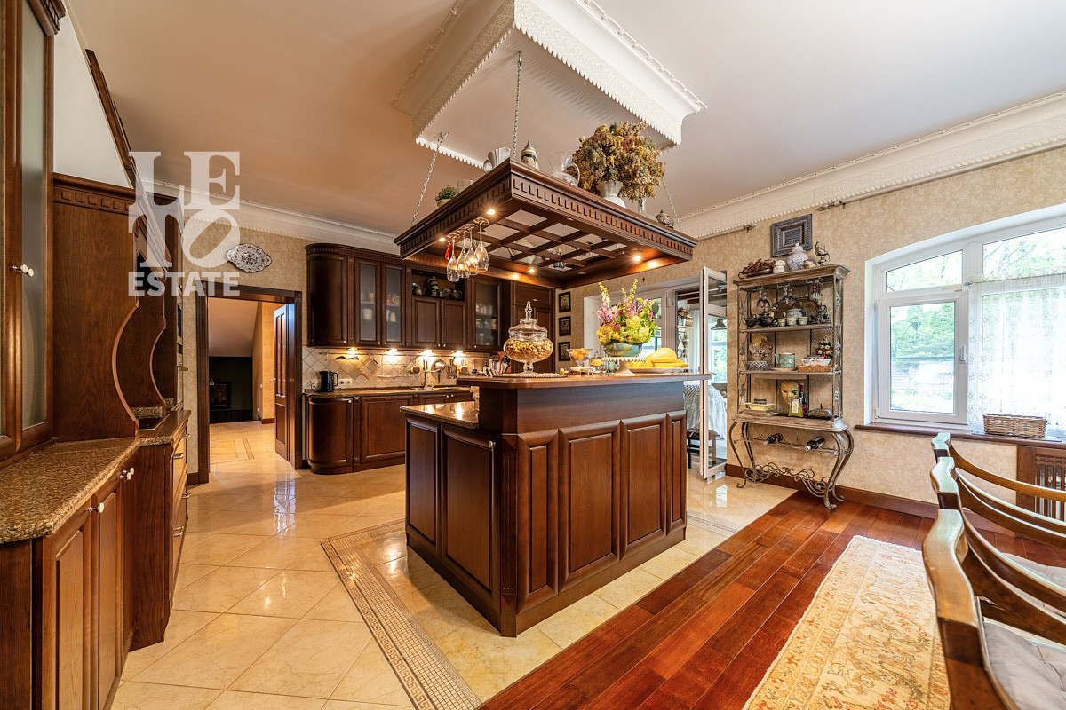 Инженерные системы гарантируют автономность: магистральный газ, скважина глубиной свыше 100 метров, современный септик и электричество. Внутри дома — идеальный микроклимат благодаря теплым полам, приточно-вытяжной вентиляции и кондиционированию. Просторные зоны для досуга включают СПА-комплекс с сауной и 7-метровым бассейном с противотоком (глубина 1,5–2 м), домашний кинотеатр с винным погребом, восточную кальянную с чайной зоной, бильярдную и спортзал. Для гостей и семьи — 5 спален и 2 кабинета (возможна перепланировка в спальни). Дополняют инфраструктуру теплая беседка с барбекю (80 кв.м), дом охраны (80 кв.м), хозблок и строящийся гараж на 2 машины.