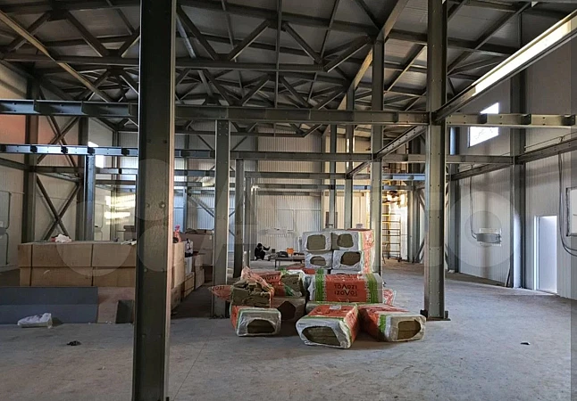 Высота потолков 6 метров в коньке 8 метров. Полы шлифованный бетон с покрытием. Мезонин.