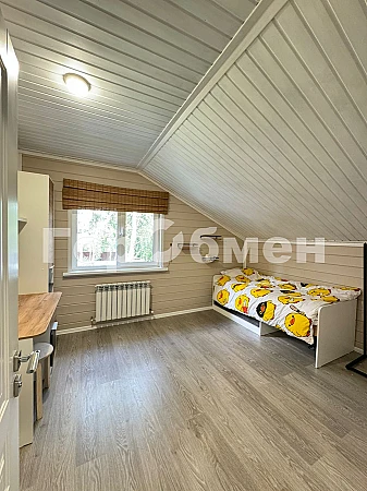 О доме: на первом этаже кухня-гостиная с выходом на террасу, сауна, бойлерная, санузел. На втором этаже четыре изолированные комнаты и санузел. В доме монолитные перекрытия и лестница.