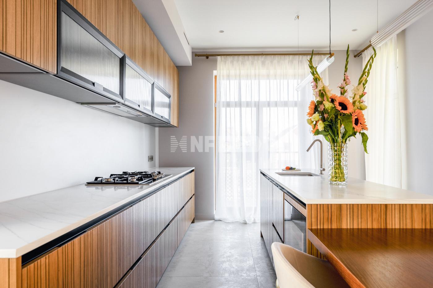 1 этаж: холл, гостиная со вторым светом и камином, кухня-столовая, закрытая терраса-гостиная-столовая, гостевая спальня, с/у, кабинет.