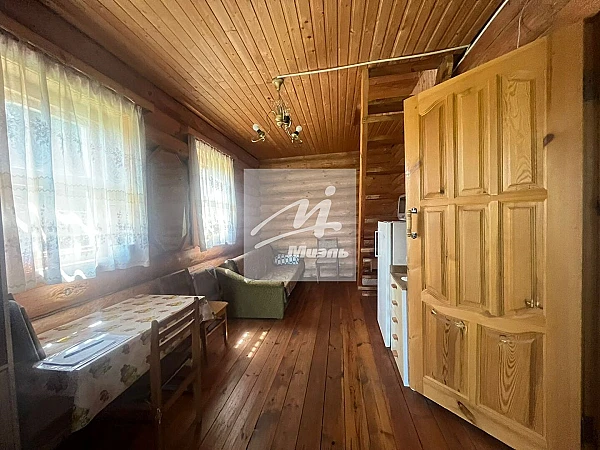 Дом 100м2, фундамент 9м*6м, 2 этажа, зимнее бревно. На 1 этаже прихожая, холл, 2 комнаты, на 2-ом этаже одна большая комната. В доме электричество, зимняя печь Булерьян. Есть летний водопровод май-сентябрь, круглогодичный колодец с погружным насосом. Сарай, в котором можно оборудовать летний душ и туалет. Отдельно стоящая баня с верандой 5м*3м из деревянного сруба: комната + парная с печкой. Также есть летняя беседка для барбекю.