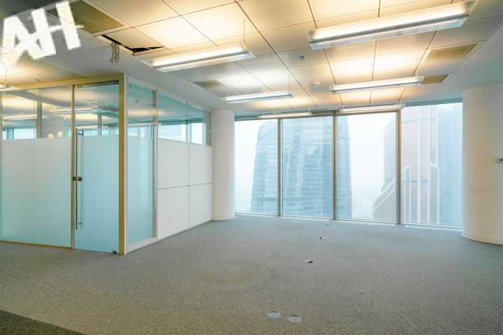 В блоке оборудованы 2 переговорные комнаты и принтерная зона, есть оборудованная кухня и санузлы. Офис светлый за счет большого количества окон с видом на набережную реки.