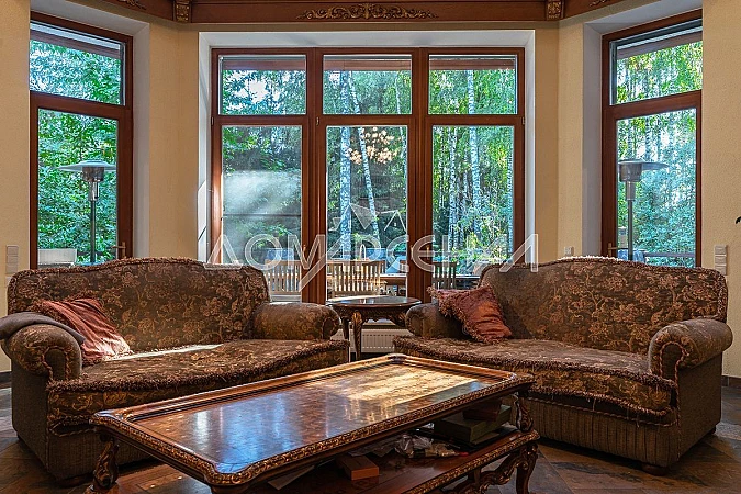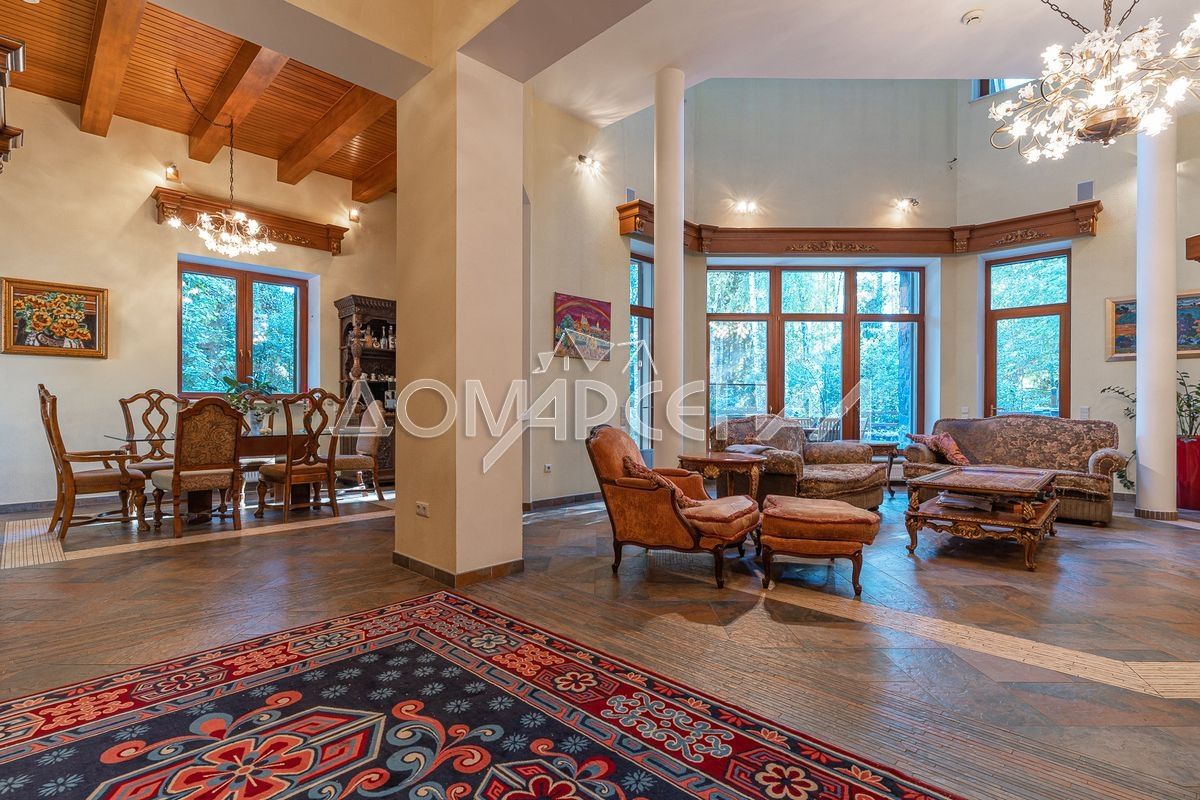 Изысканный коттедж, построенный по авторскому проекту известного архитектора, в окружении лесных деревьев. Интересная система зонирования и потрясающий вид из окон. Высокие потолки в гостиной (4,5 м.). Продуманная и качественно построенная SPA-зона с бассейном. Стерео-система во всем доме.