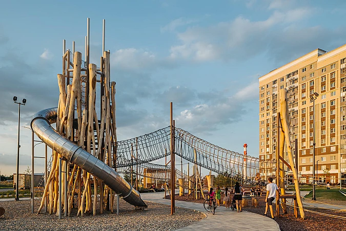 Дворы — приватные мини-парки без машин и посторонних. Кроме игровых площадок, для детей обустроили тематический плейхаб «Маяк». В будущем появятся плейхаб «Алиса в стране чудес», арт-объект «Тропа зеркал», а также большой ландшафтный парк.