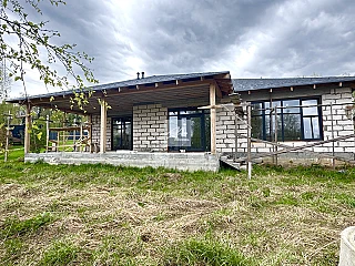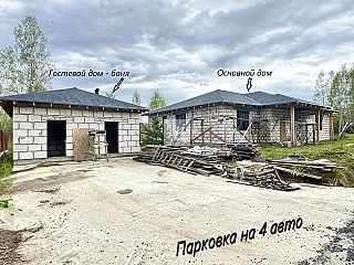 В доме установлено газовое оборудование (котел, плита, батарея) и подключен газ, 3 фазы электричества (15 кВт), скважина глубиной 35 м., переливной септик, состоит из 2 колодцев и 8 колец, дымоход для будущего камина, а также зона для сауны.