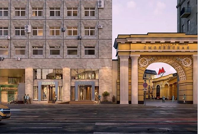 В 20 метрах от выхода из станции метро Смоленская. Сверхинтенсивный пешеходный и автомобильный трафик. Развитая торговая, деловая и административная инфраструктура.