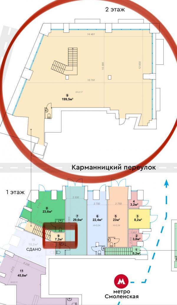 В 20 метрах от выхода из станции метро Смоленская. Сверхинтенсивный пешеходный и автомобильный трафик. Развитая торговая, деловая и административная инфраструктура. Большие витринные окна. Высокие потолки. Отдельный вход с фасада Свободная планировка на схеме под номером 11.