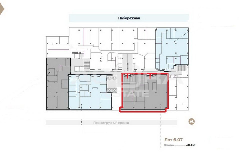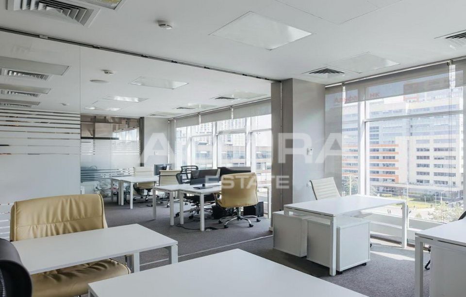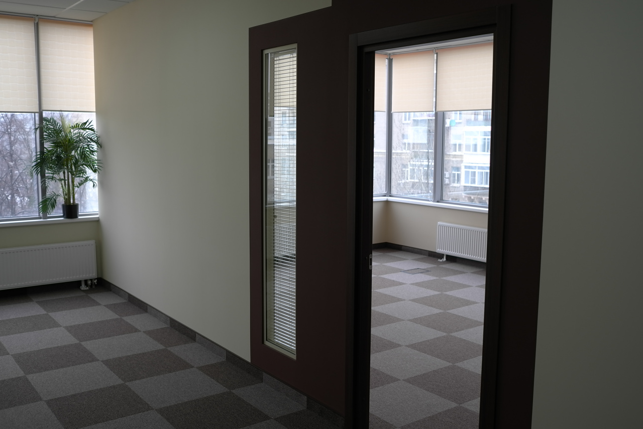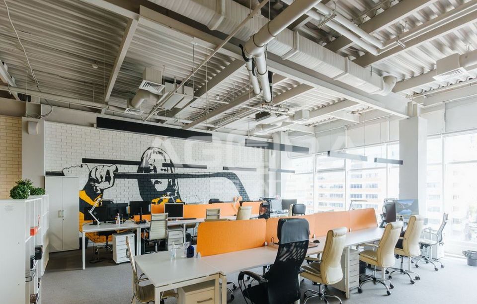 Общая площадь офиса 439,8 м2, расположен на 6-м этаже, планировка смешанная. Помещение с отделкой. Естественное освещение - панорамные окна. Высота потолков 3,3 метра.