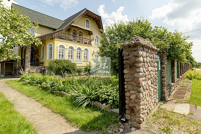 На первом участке расположена уютная беседка с зоной барбекю, гараж на два автомобиля, комната для обслуживающего персонала, бассейн.
