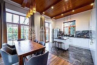 Дом имеет 5 изолированных комнат, 4 просторных общественных пространства ( кухню-гостиную, зимний сад, комнату с камином и мансардное помещение) и 4 совмещённых санузла, что делает его идеальным выбором для тех, кто ценит простор и удобство. Мастер спальня расположена на втором этаже и имеет выход на большой балкон, с которой открывается прекрасный вид.