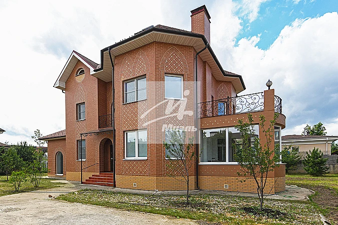 В качестве облицовки дома использована глянцевая клинкерная плитка, Германии, оригинальный декор выполнен мастером работавшим во Франции и Англии по реставрации церквей. Ограждение балконов чугунная. Балконы и внешние лестницы отделаны клинкерной плиткой, Испании. Крыша- Мягкая черепица обеспечивает идеальную тишину даже во время дождя. Такая отделка дома очень выделяет его на фоне остальных домов поселка, в этот "игрушечный замок" невозможно не влюбиться с первого взгляда.