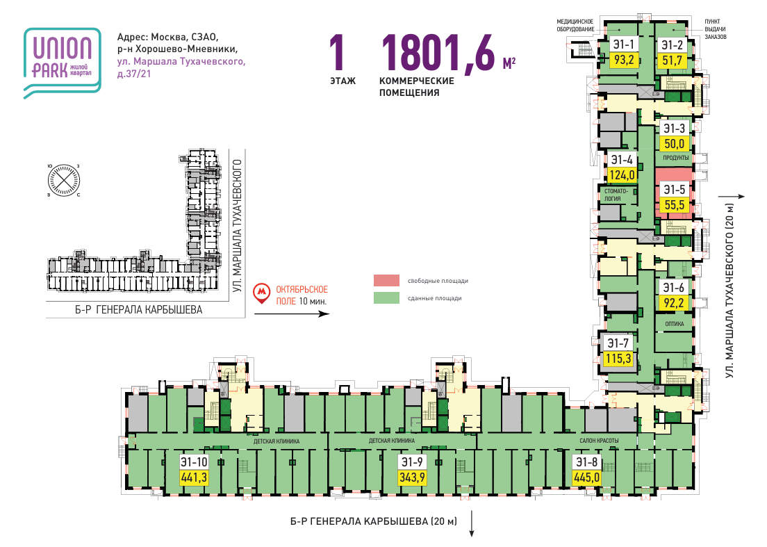 Аренда торгового помещения площадью 55,5 кв.м в жилом квартале Union Park, по адресу: ул. Маршала Тухачевского, 37/21.