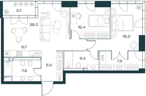 Купить 3к квартиру 87 м² в квартале SHIFT