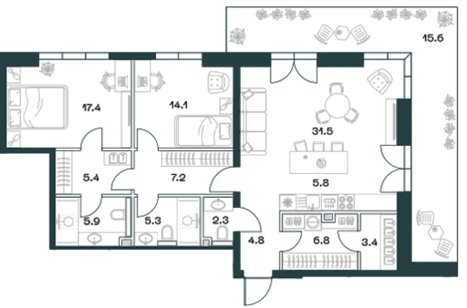 Купить 3к квартиру 125 м² в квартале SHIFT