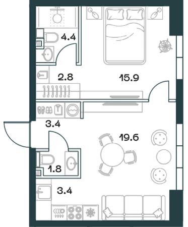 Купить 2к квартиру 51 м² в квартале SHIFT