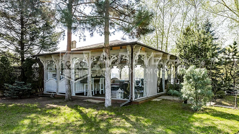 Дом у воды со своим пирсом рядом с Москвой. В 20ти минутах езды от Кремля. Кирпичный дом построен на плавающем фундаменте, ремонт выполнен в классическом стиле, обставлен дорогой итальянской мебелью, венецианские люстры. Установлена качественная премиальная техника и сантехника. Имеет парадный вход. С обратный стороны дома выход к реке, где можно пришвартовать собственную яхту. Дом имеет многоуровневый дизайн, позволяющий комфортно разместить несколько поколений. Соседи все построены. Есть отдельное помещение для персонала.