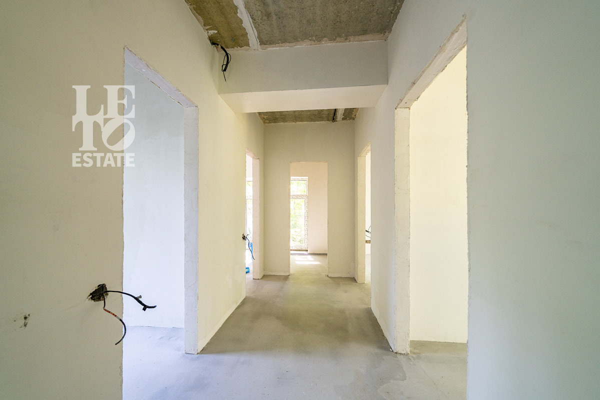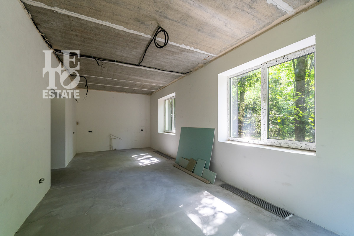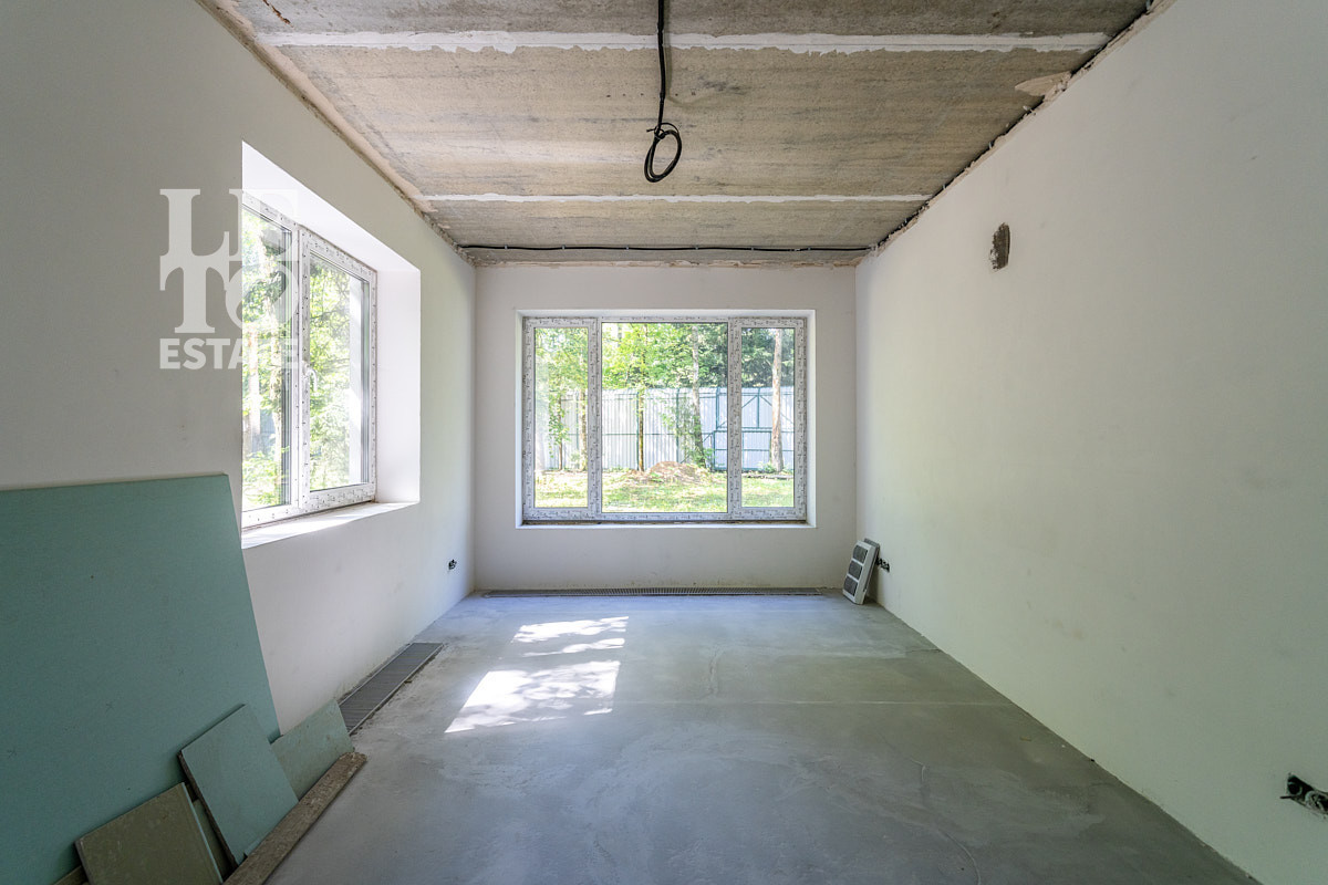 Современный дом в состоянии "WHITE BOX" (готов под чистовую отделку) площадью 150 кв.м на лесном участке 10.5 соток. Дом построен на совесть: монолитная плита фундамента, газоблочные стены, железобетонные перекрытия. Для Вашего комфорта в нем уже смонтированы теплые полы, дополненные радиаторами, и установлен газовый котел Bosch. Панорамные окна с тройным стеклопакетом и мультифункциональными стеклами обеспечивают отличную тепло- и шумоизоляцию. Входная группа отделана натуральным камнем, по периметру дома – плиточная отмостка. Все базовые инженерные системы полностью разведены: электричество (3 фазы, 15 кВт), водоснабжение от собственной скважины с кессоном, водоотведение, магистральный газ, оптоволоконный интернет, цифровое ТВ, видеонаблюдение и автоматические ворота. Участок лесной, открывает широкие возможности для ландшафтного дизайна и зонирования.
