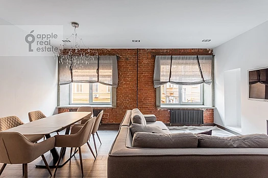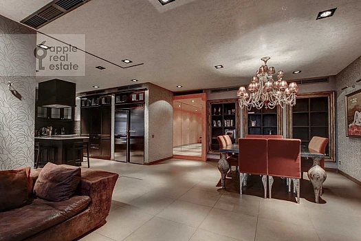 В квартире выполнен ремонт по индивидуальному дизайн-проекту с использованием высококачественных натуральных материалов. Дизайнерская мебелировка: диван немецкого изготовления, автоматически раздвигается в спальное место, встроенная мебель изготовлена по индивидуальному заказу. Лестница в кабинете из натурального дерева - бук, шкафы в библиотеке - дуб, стулья в гостиной - дуб. Двери из натуральных материалов - дуб, липа.