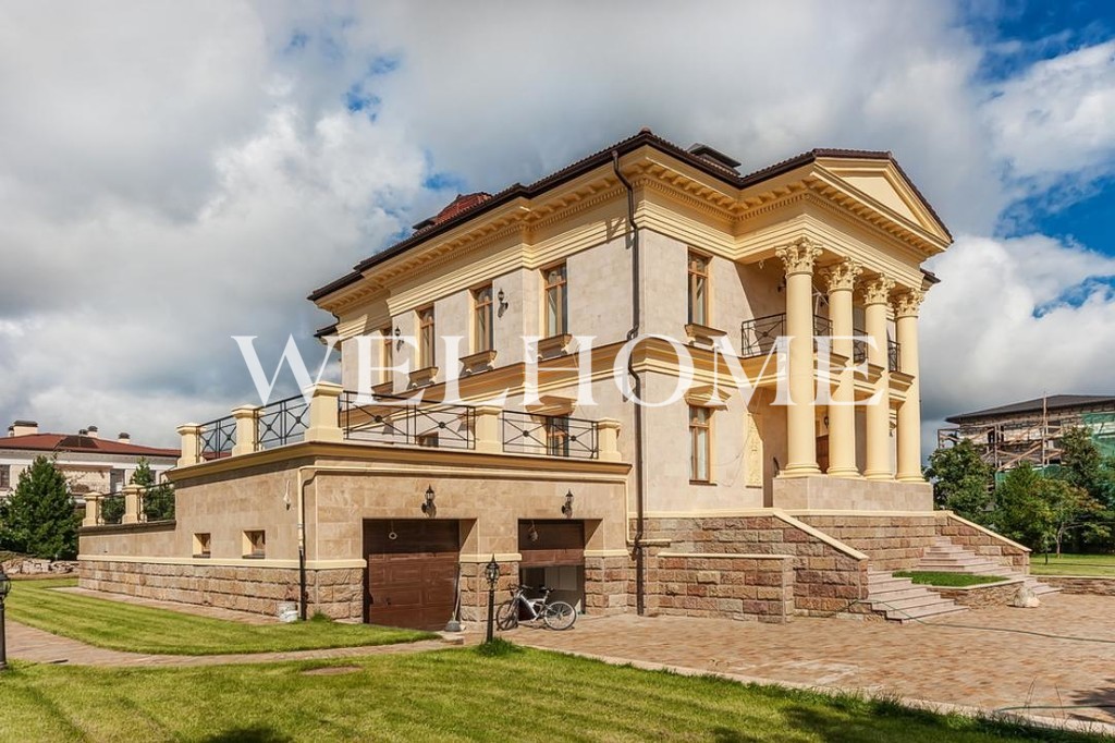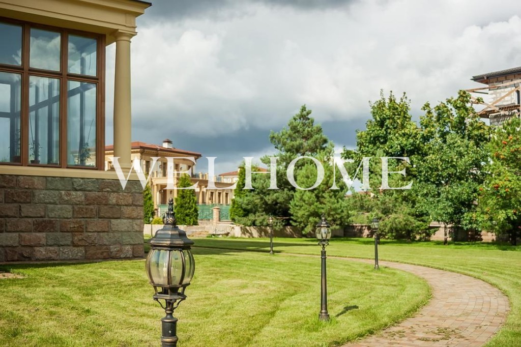 ID объекта: Z-3114. На продажу предлагается особняк под чистовую отделку в охраняемом коттеджном поселке. В доме спланированы гостиная со вторым светом, каминный зал, 5 спален, кинозал, 7 с/у. К дому пристроена зона бассейна с зимним садом. На участке пруд. В отдельно стоящем строении размещен гараж с квартирой для персонала. Центральные коммуникации.Рядом вся инфраструктура: магазины, рестораны и кафе, торговые и развлекательные центры, спортивные комплексы, медицинские и образовательные учреждения и мн. др.