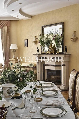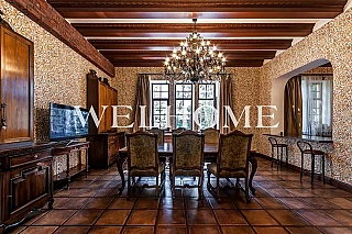 ID объекта: Z-10114. Предлагается резиденция в классическом стиле на участке с эксклюзивным ландшафтом в охраняемом поселке. В доме выполнен дизайнерский ремонт по индивидуальному проекту, есть бассейн, гостиная с камином, зимний сад, 8 спален, 9 с/у. На участке растут вековые сосны, выполнен первоклассный ландшафтный дизайн, создан фонтан, беседка, высажены декоративные растения из Германии, цветы. Все коммуникации центральные.Поэтажное описание: Цоколь: бассейн 12,5 х 6 метров, спортивный зал, 2 душевые комнаты, с/у;1 этаж: зимний сад, гостиная, кухня, кабинет, холл, 2 с/у, подсобные помещения;2 этаж: 4 спальни с гардеробными комнатами и с/у;3 этаж: 4 комнаты, 3 с/у.