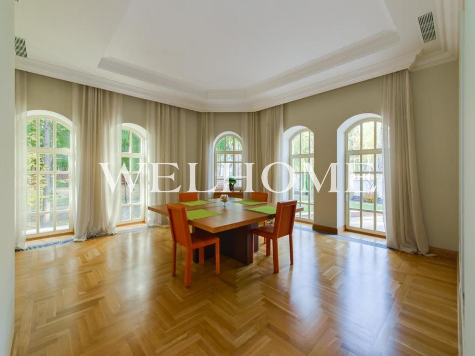 ID объекта: Z-12554. Предлагается резиденция на лесном участке в элитном поселке Ландшафт. В доме предусмотрен бассейн, сауна, кинотеатр, каминный зал, 5 спален, 6 с/у.Поэтажное описание: Цоколь: холл, с/у, прачечная, винный погреб, кладовая, техническая зона, кинотеатр, спортзал, комната для персонала, отдельный вход\выход;1 эт.: прихожая, парадный холл, кухня, малая столовая, большая столовая, библиотека, каминный зал, с/у, кабинет, бассейн, сауна;2 эт.: холл, ,2 гостевые спальни, с/у, мастер-спальня с камином со своим санузлом и гардеробной и зоной отдыха, гардеробная, комната няни с с/у, детская спальня с с/у и гардеробной, игровая комната.Строения на участке: гараж на 2 м/м с комнатами для охраны и персонала. Центральные коммуникации.На территории комплекса оборудована зона отдыха с каскадом прудов, проложены прогулочные дорожки, проведены работы по благоустройству, установлены парковые светильники. Оборудован современный КПП с пультом охраны.