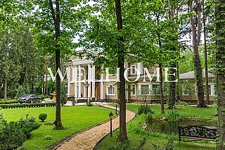 ID объекта: Z-12706. Предлагается классический особняк под ключ на лесном участке в коттеджном поселке. Мраморные камины, лестница - дуб, полы - плитка с инкрустацией, дубовая паркетная доска,система 'теплые полы', эксклюзивная мебель по индивидуальному заказу (Италия), кухонная мебель на заказ (Италия), дверь главного входа из массива дуба (ручная работа), межкомнатные двери на заказ, комплект встроенной бытовой техники премиум-класса.Поэтажное описание: 1 этаж: холл, гардеробная, гостевой санузел, гостиная с камином, кухня, столовая, кабинет-библиотека, 'зимний сад'/зона отдыха, 2 спальни + санузел + душевая, летняя терраса, зона спа (раздевалка, бассейн, джакузи, санузел, душевая, спортивный зал);2 этаж: холл, зона отдыха, спальня, спальня + гардеробная + санузел + душевая + сейфовая, спальня + гардеробная + санузел + душевая, спальня + гардеробная + санузел + душевая, балкон.На территории также есть гостевой дом-баня, дом для персонала и генераторная. Коммуникации центральные.