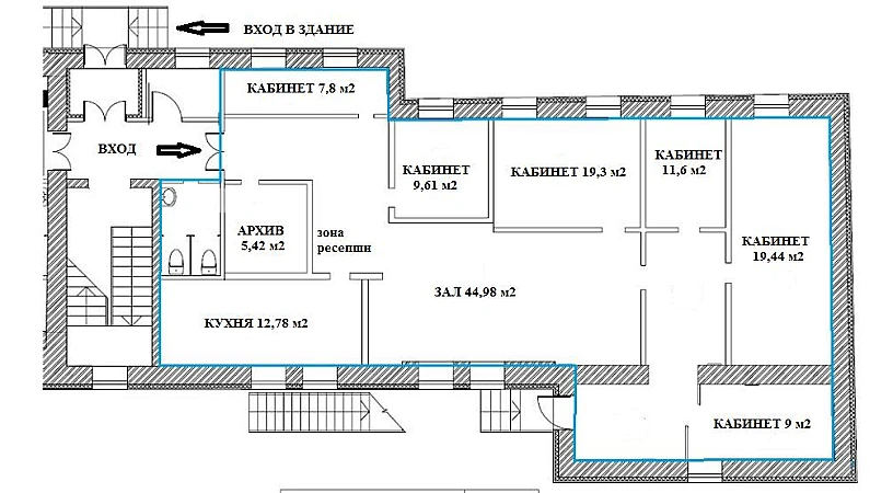Высота потолков 3,30 м. Достаточное кол-во окон. Кондиционирование, свежий ремонт.