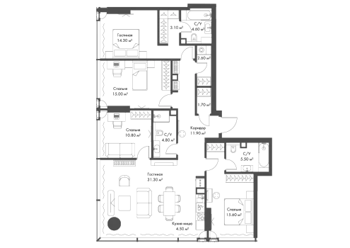 ID объекта: G-4216. В отдельно стоящем особняке на продажу предлагается четырехкомнатная квартира под отделку.Планировка: кухня-гостиная, 2 спальни, кабинет, 2 санузла, гардеробная. Высота потолков – 3,5 м.В доме всего 2 квартиры. Каждая квартира занимает этаж. На первых двух этажах расположен банк с отдельным входом.Территория особняка огорожена. 2 машиноместа в крытом паркинге и 1 машиноместо на открытой территории входят в стоимость.Произведен капитальный ремонт дома. Перекрытия железобетон. Тихий центр. По соседству Чешское посольство, занимающее целый квартал.Участник ассоциации AREA!