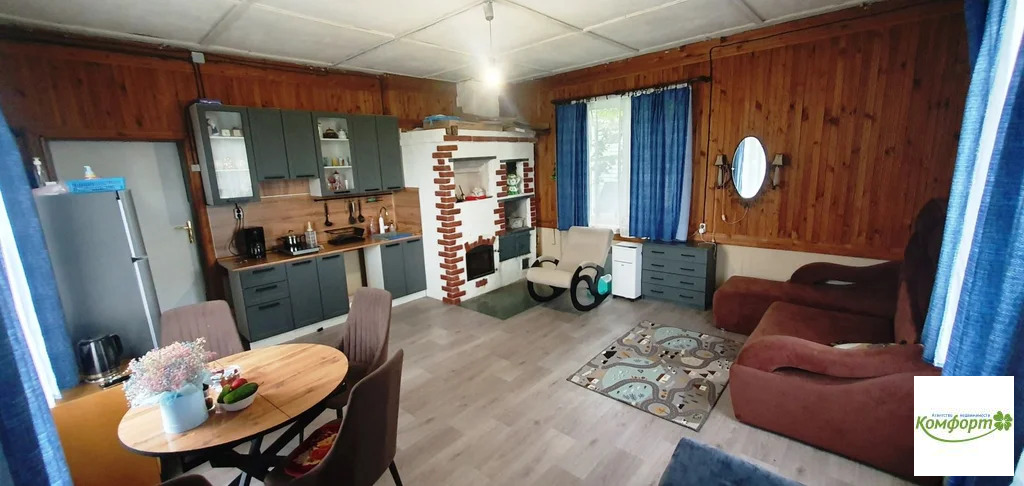 О доме: Построен в 2000 году на надежном фундаменте из бетонных блоков и кирпича, есть гараж - подвал (может заехать невысокое авто), где пол забетонирован, есть дренажная яма с принудительным насосом в канализацию, скважина с питьевой водой заведена в дом, также по-зимнему утеплена. Дверь в подвал тоже толстая(зимняя). Цоколь дома дополнительно утеплен пеноплексом 5 под декоративную отделку. Отмостка вокруг дома на бетонной подушке 10 см отделана плиткой. Перекрытие первого этажа и цоколя- бетонная плита. В дом ведет удобная лестница на просторное крыльцо под навесом, затем холл с лестницей на мансарду. На первом этаже располагается светлая кухня-гостиная около 30 кв.м с с тремя окнами (пластиковые зимние стеклопакеты), кухонным гарнитуром и рабочей ПЕЧЬЮ-КАМИНОМ! Есть напольный кондиционер. Пол - новый ламинат, высота потолка- 3 метра! Второй этаж- мансарда около 25 кв.м, отделанная вагонкой. Крышу в 2023 году сделали новую, металлическую с водостоками и отливами. Электричество-Мосэнерго, 15 кВт, трехфазный автомат с УЗО установлен в доме, выполнена в 2023 году новая разводка электричества по дому. Счетчик Мосэнерго на столбе. Канализация - переливные кольца. Газ- в проекте есть. Членские и целевые взносы- в год.