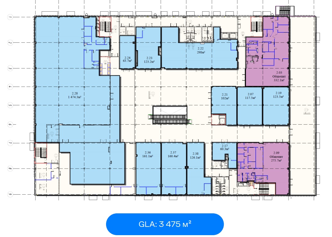 Распределение арендопригодных площадей по уровням.