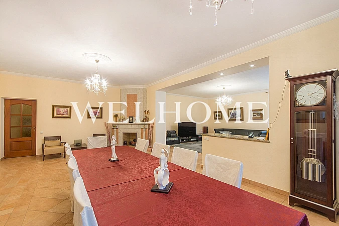 1 этаж: бассейн, 2 с/у, гостиная с камином, гараж на 2 м/м, кабинет, сауна;