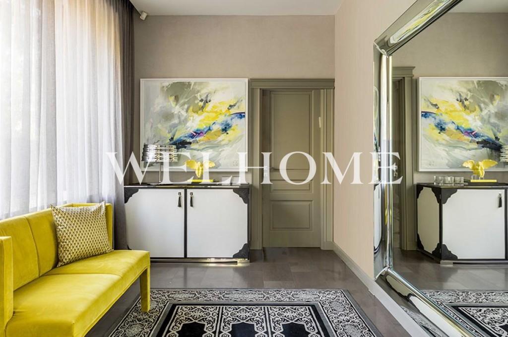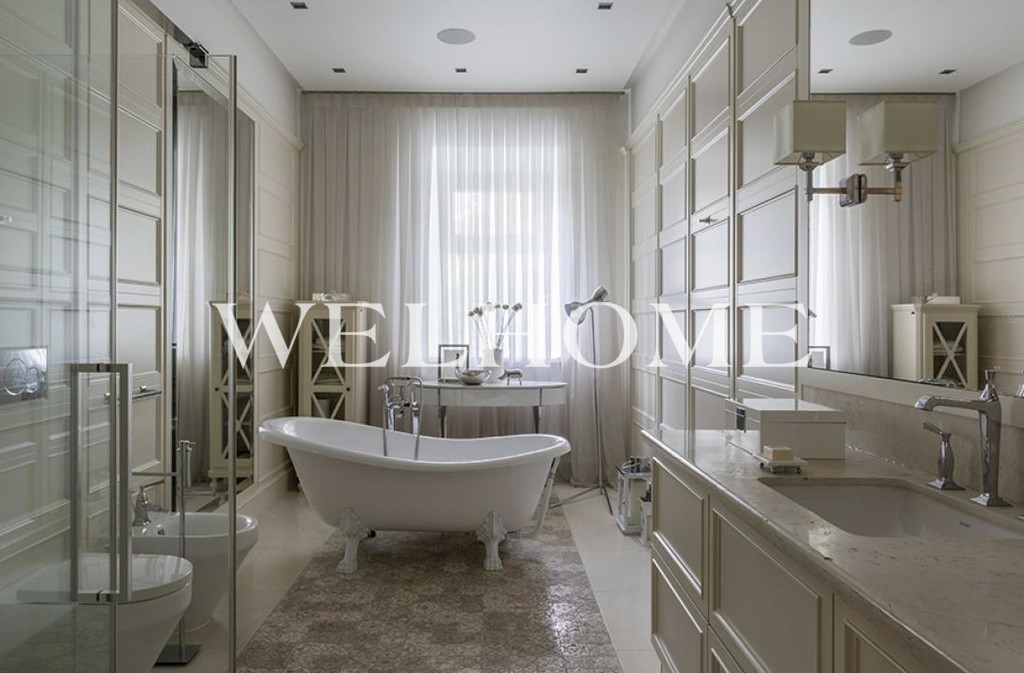 Кухня-столовая, гостиная, открытая терраса, 4 спальни, два кабинета, 6 с/у, 4 гардеробные, спортзал, сауна, подземный паркинг на 4 автомашины.