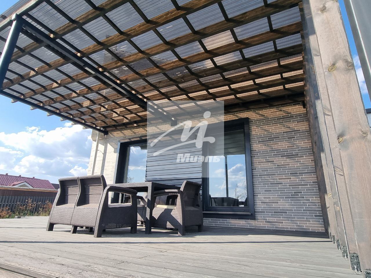 * На втором этаже из спальни есть выход на треугольный компактный открытый балкон с навесом, защищающим от осадков.