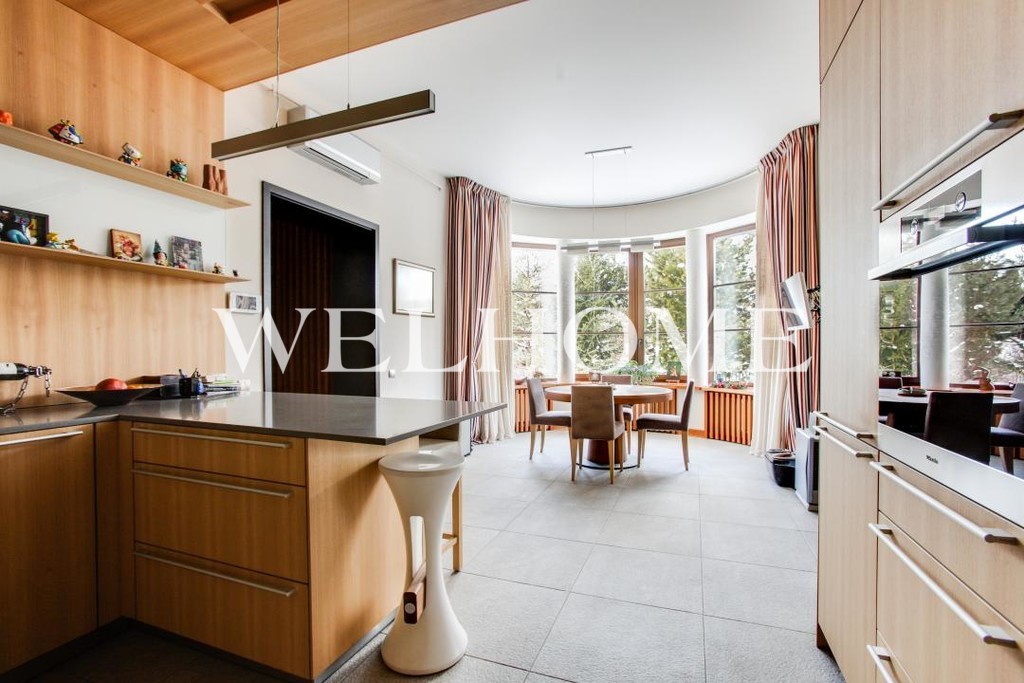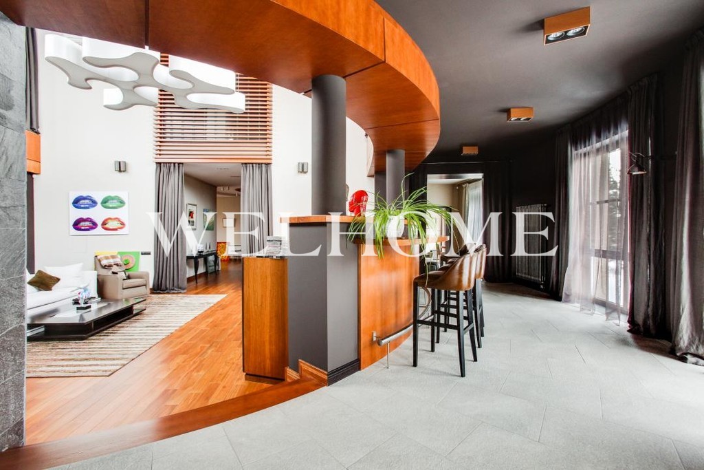ID объекта: Z-14799. Предлагается новый дом, с мебелью, на ландшафтном участке в элитном поселке.Функциональная планировка предусматривает наличие просторной гостиной со вторым светом и выходом на патио, столовой, кухни, кабинета, кинотеатра, 4 спален. Готов к проживанию: меблирован, укомплектован необходимой техникой современных производителей премиум-класса.Интерьер выполнен в современном стиле, в отделке использовались качественные и натуральные материалы. На участке выполнен ландшафтный дизайн. Предусмотрен гараж на три машиноместа и квартира для персонала.
