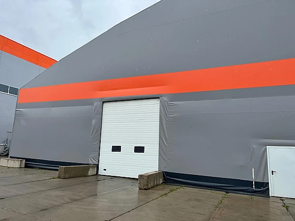 Двое больших (под заезд фуры) ворот на нулевом уровне.